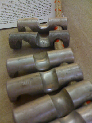 One of the great things about rappel racks is the replaceable bars. When they wear out, simply put on a new one. Here’s Bill Steele’s award winning collection that he displayed at the 2009 ICS/NSS Convention in TX and wore around his neck at the banquet, followed by some other examples that I have collected.